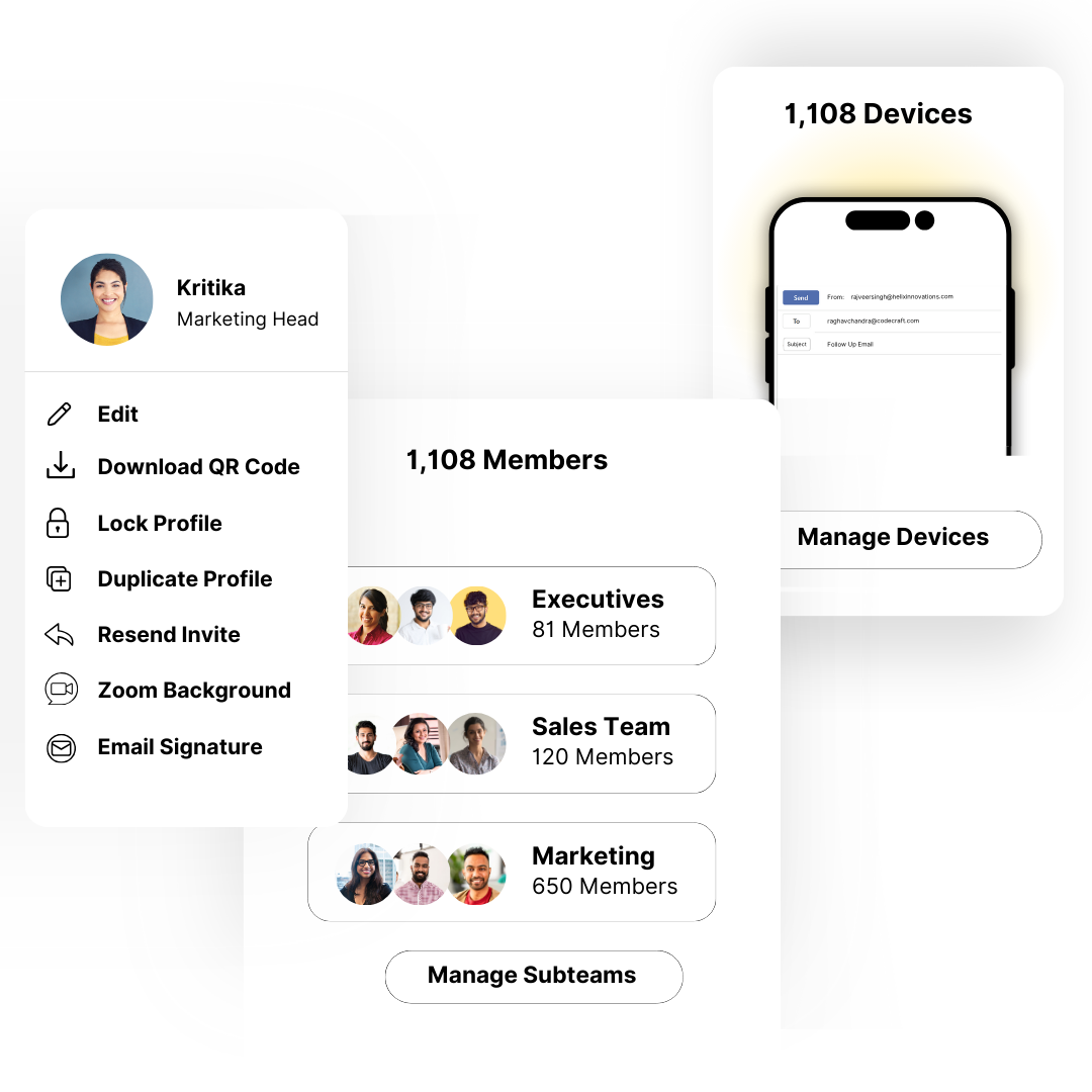 Create, share, and manage branded digital cards across your team for easy info sharing.