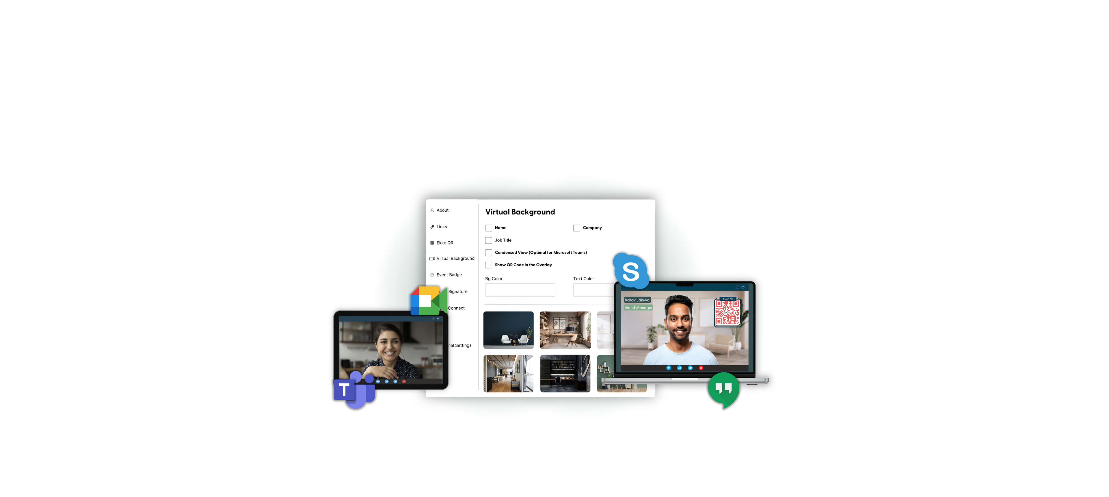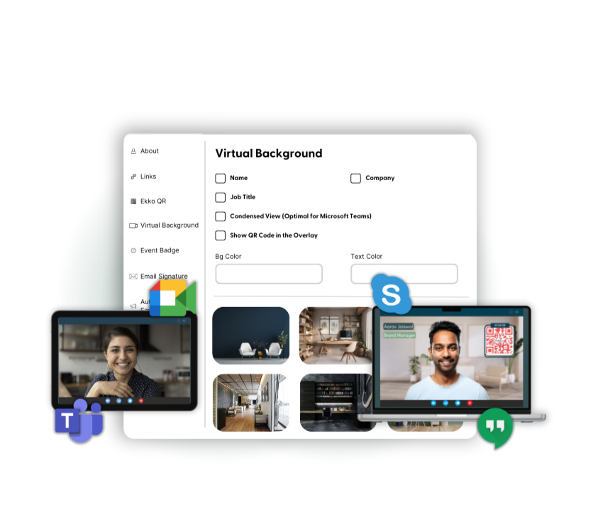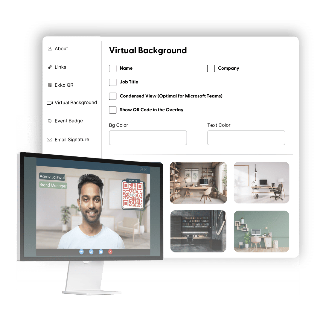 Design eye-catching virtual backgrounds featuring your details and Ekko QR code. Turn each meeting into a chance to engage with new contacts and capture leads instantly.