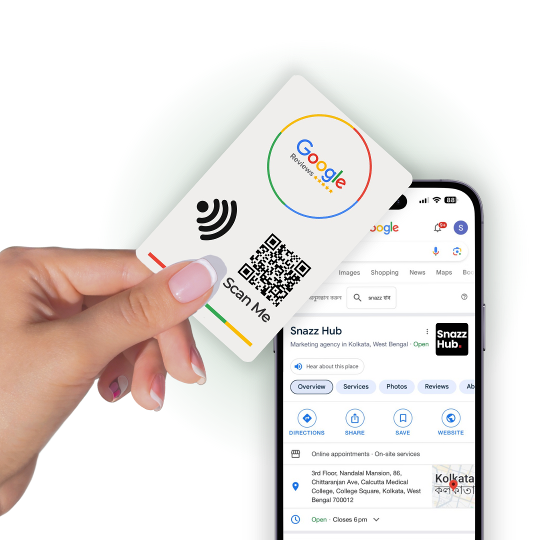Simply hand the card to your customers, who can either tap their NFC-enabled device or scan the QR code to access your review page instantly. It’s that easy!