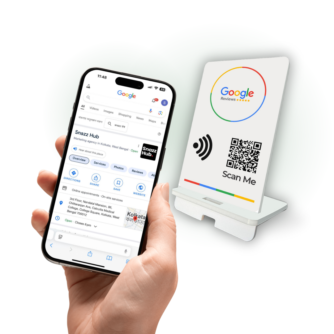 Absolutely! The standee features a dynamic QR code that turns every customer interaction into a connection—just scan and access all your business info instantly. It’s like magic, but with technology!