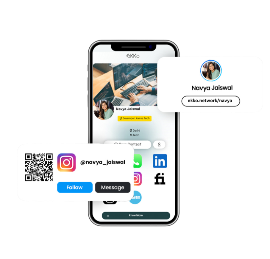 Share your Ekko profile via product, link, or QR code—just one tap to start connecting with style