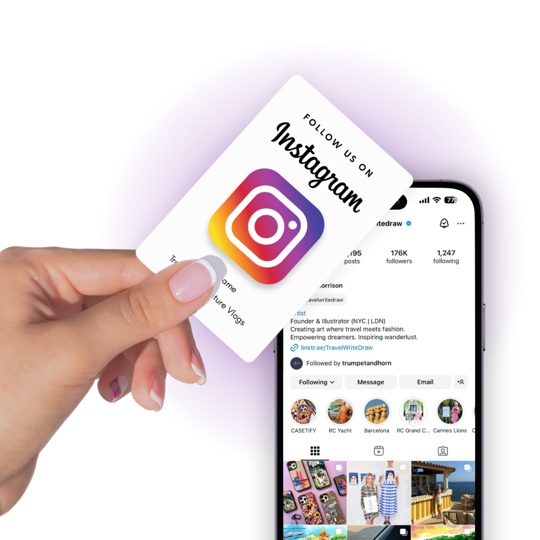 Elevate your social engagement with Insta Engage. This NFC card seamlessly connects your Instagram profile, making it easy to follow, review, and share your content with your network and connections. By using this card, you can easily reach a wider audience and inspire others.